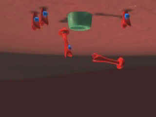 La superficie de las células epiteliales del intestino esta cubierta de microvellosidades, extensiones de la célula que incrementan la superficie destinada a la absorción de nutrientes. En la animación una bacteria Escherichia coli (en color púrpura) se engancha a la superficie de la célula epitelial del intestino (en marrón) por medio de los pili ( tetherlike pili) . Los pili están constituidos por hebras de largas proteínas filamentosas que pueden adherirse a las microvellosidades de la superficie de las células intestinales.
