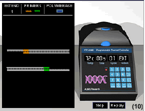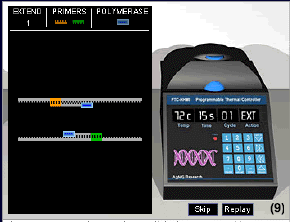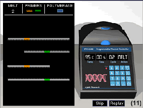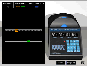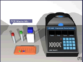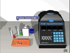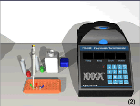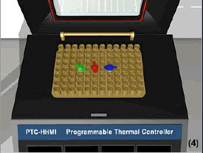 Una vez que los tubos se colocaron en el termociclador ( (4), la "máquina