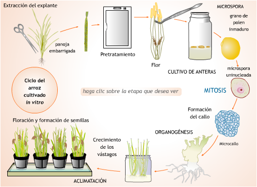 Ciclo de vida del arroz cultivado in vitro