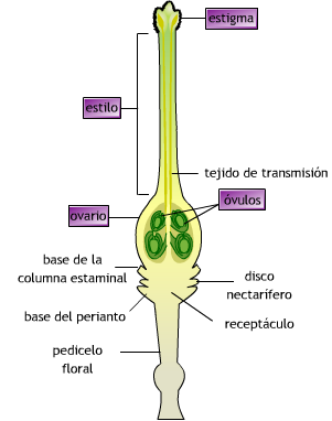 lleva dos hileras de óvulos superpuestos, siendo los superiores más