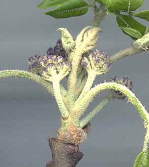 Las yemas, tanto foliares como florales, están cubiertas por abundantes pelos que les dan un aspecto aterciopelado.