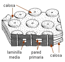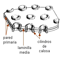 atravesado por un plasmodesmo, y frecuentemente en ese lugar la