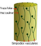 caulinares y trazas foliares se denomina simpodio vascular.