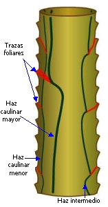 hojas, a partir de los haces del tallo, formando las trazas