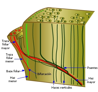 foliares. Los haces desde los que nacen las trazas foliares se