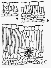 | dorsiventral, cuando el parénquima en empalizada está hacia la cara adaxial