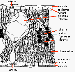 caras del limbo foliar, y el parénquima lagunoso queda en el