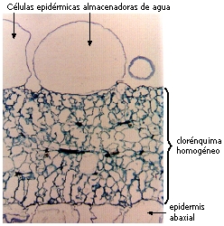 y plantas con hojas suculentas, presentan el mesófilo con células pequeñas, el