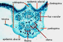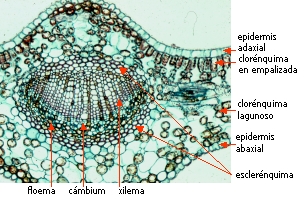 por debajo de las epidermis, y esclerénquima alrededor de los