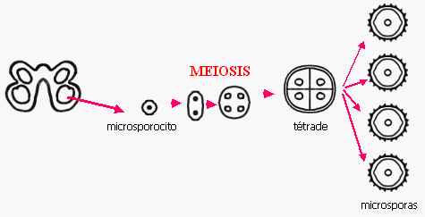 Al terminar la meiosis, cada microspora se rodea de una pared
