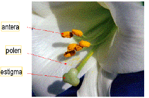 piezas fértiles, primero el abdomen toma contacto con el estigma