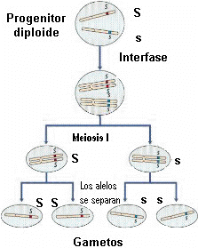 Principio de la segregación: (primera ley de Mendel); sostiene que cada par de caracteres heredables se separa durante la formación de los gametos en manera tal que cada gameto recibe uno de ellos.