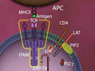 el otro por el receptor de la célula T. ( T-cell receptor o TCR).