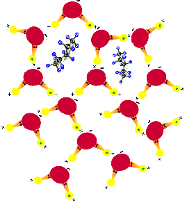En presencia de moléculas lipídicas, el agua adopta en torno a ellas
