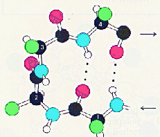 vertebral o "backbone") se encuentra unido por puente hidrógeno.