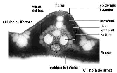 hojas y en el sistema vascular. Tejido fundamental constituido por