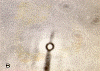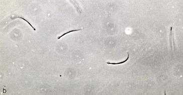 ). Si bien en esta especie el acrosoma no es visible con microscopía óptica, también aquí aparece un halo de reacción en la zona apical del espermatozoide y el desarrollo del halo es inhibido no sólo por la presencia de inhibidores de proteinasas, sino también por el